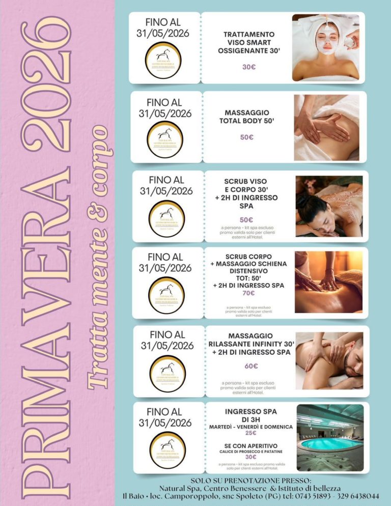 Nella Natural Spa Il Baio vi abbandonerete al relax totale affinché armonia, cura del corpo e dello spirito diventino il filo conduttore per una pausa rigenerante. La nostra esperienza e professionalità al servizio della vostra salute e del vostro benessere, in un ambiente accogliente immerso nella natura, dove profumi, musica e colori vi accompagneranno in questo momento di puro relax, lontano dalla frenesia quotidiana.